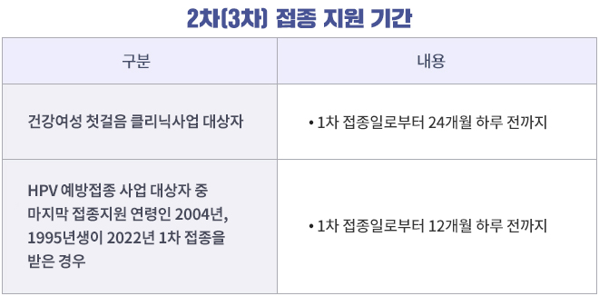 ▶ 18~26세('97~'05년생) 저소득층 여성의 HPV 무료 예방접종 지원
